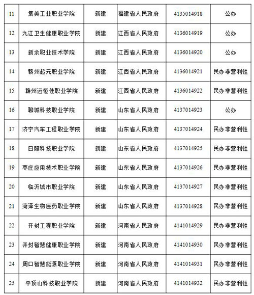 附:省级人民政府审批设置实施专科教育高等学校备案名单