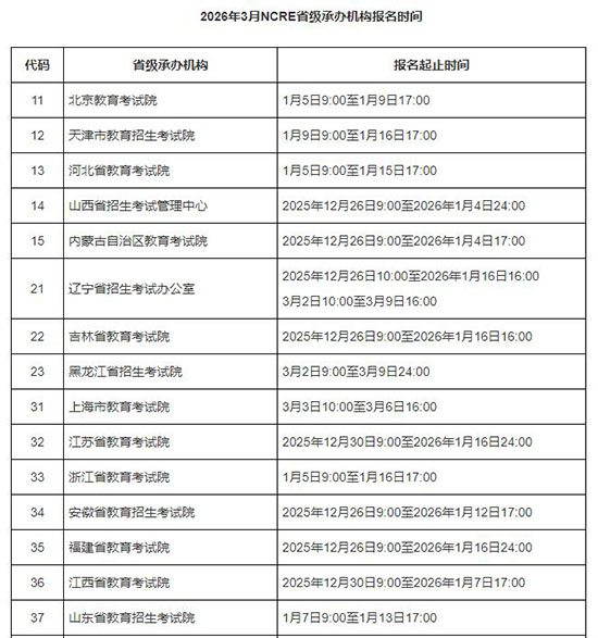 2026年3月NCRE省级承办机构报名时间如下: