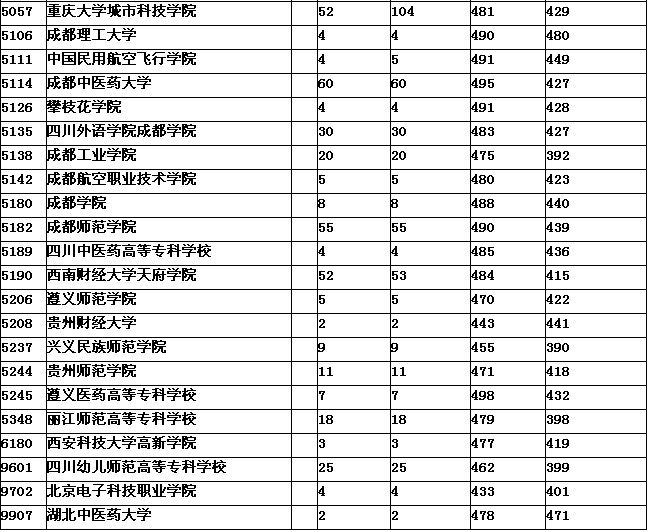 2012年重庆一专文科部分院校录取情况8月7日