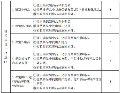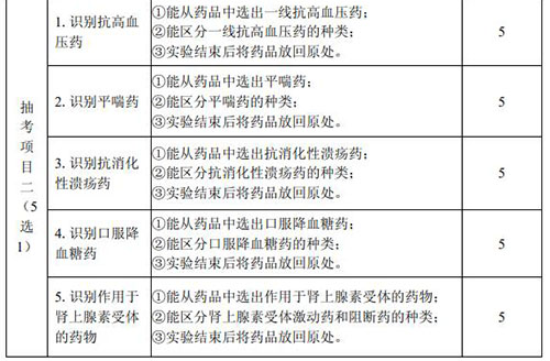 现场操作。药剂类专业技能测试由必考项目、抽考项目一和抽考项目二组成。每位考生必须参加 1 项必考项目和 2 项抽考项目的考试。