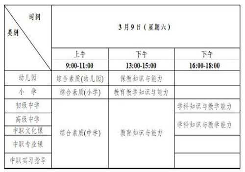 (一)中小学教师资格考试各学段考试科目的具体时间,如表1所示。