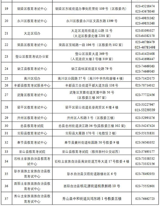 4.考区选择:我市中小学教师资格考试(笔试)共设37个考区,每个考区的考位有限,当该考区报名人数达到上限后,系统将关闭该考区,届时请考生选择其它可选考区报考。各考区咨询电话见附件2。