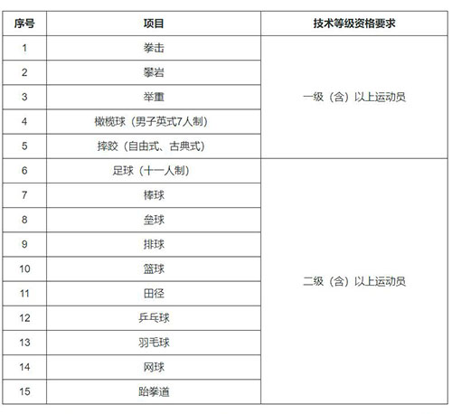 3.考生必须具备所列招生项目之技术等级资格要求(等级证书审批日期:2014年1月1日——2024年3月10日),以“国家体育总局运动员技术等级系统”公布的数据信息为准。