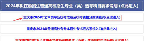 1.考生登录重庆市教育考试院门户网,选择“重庆市2024年艺术类专业统考成绩及校考资格分数线查询(点击进入)”