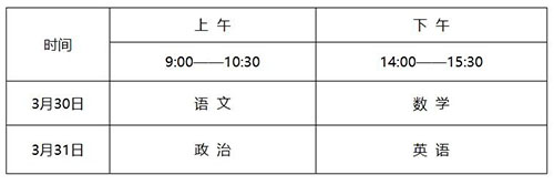 1.考试科目:语文、数学、政治、英语;考试分值:每科150分,总分600分,使用国家通用语言文字作答。