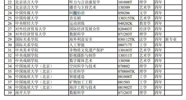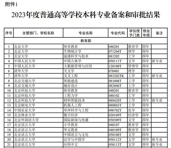 教育部公布2023年新一批普通高等学校本科专业备案和审批结果