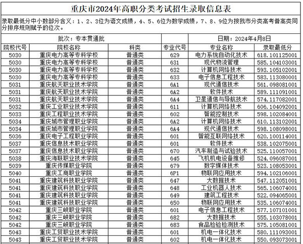 据重庆市教育考试院公布信息,关于2024年度高职分类考试招生录取情况(专本贯通批)公布如下: