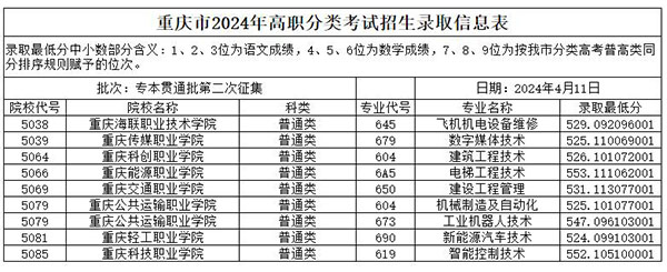 重庆2024年高职分类考试专本贯通批(第2次征集)招生录取情况公布