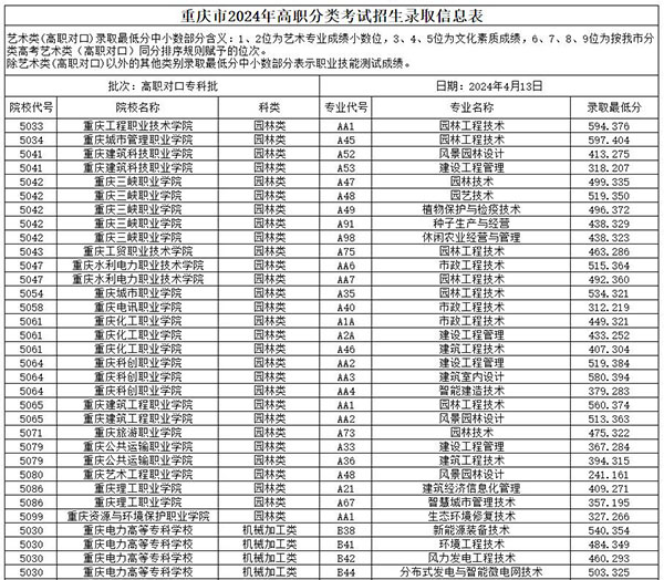 关于2024年重庆市高职分类考试对口专科批招生录取情况已公布,具体统计如下: