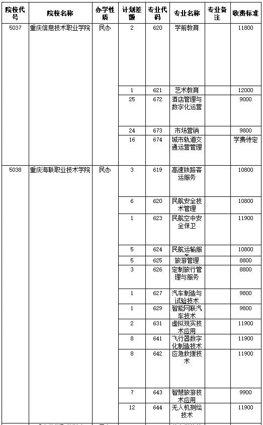 2024年重庆普通高职分类专科批第3次征集缺额计划公布