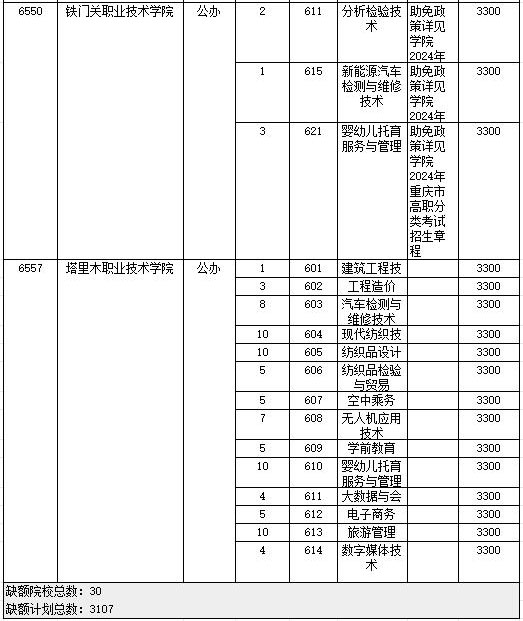 关于2024年普通高职分类专科批(第3次征集)缺额计划现已公布,具体如下:
