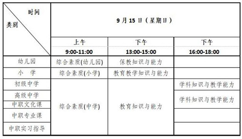 (一)中小学教师资格考试各学段考试科目的具体时间