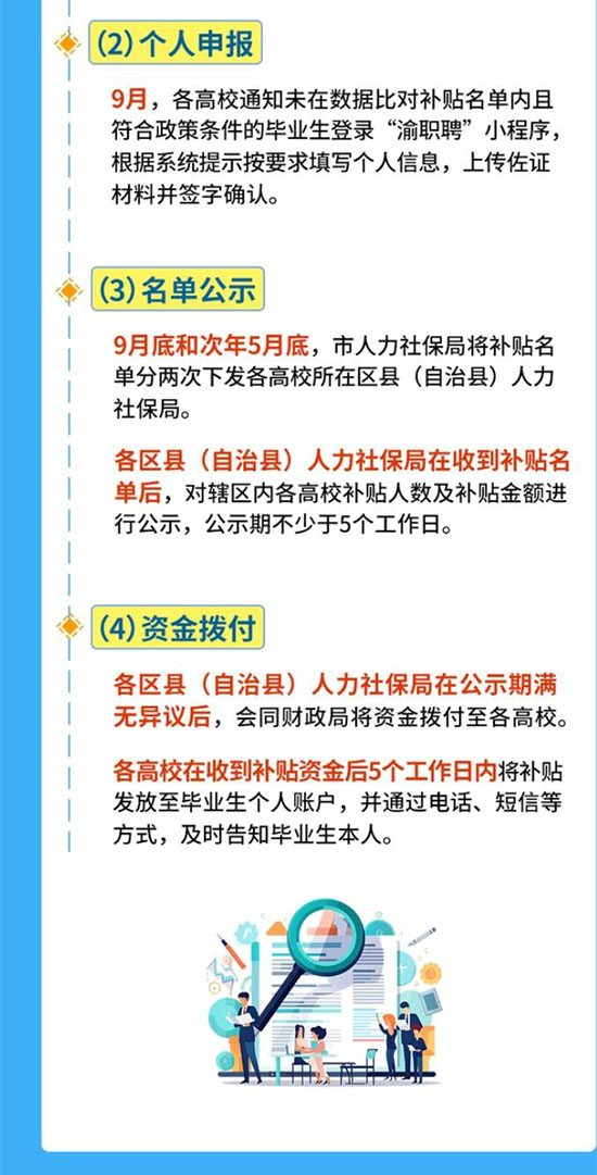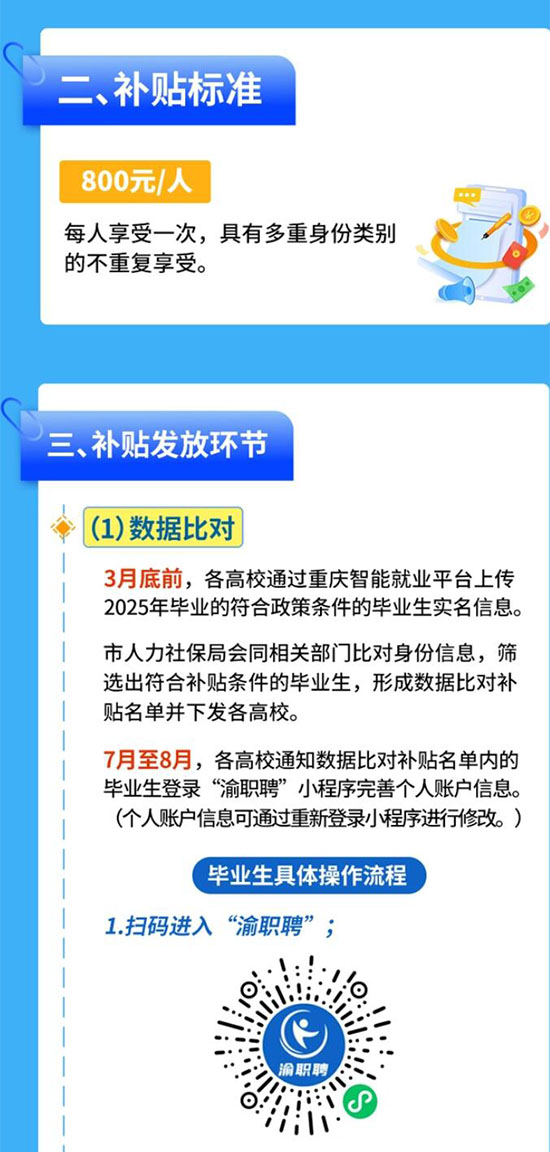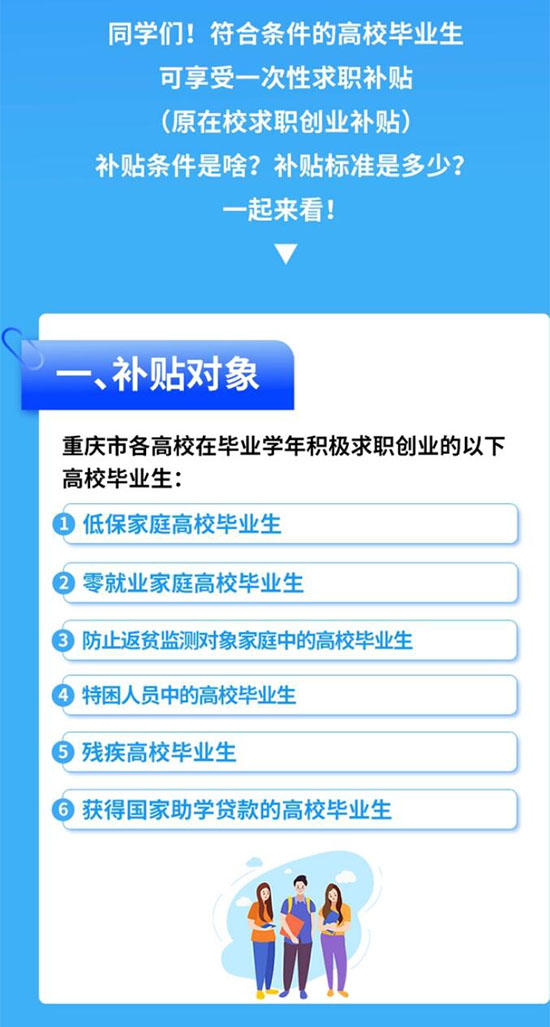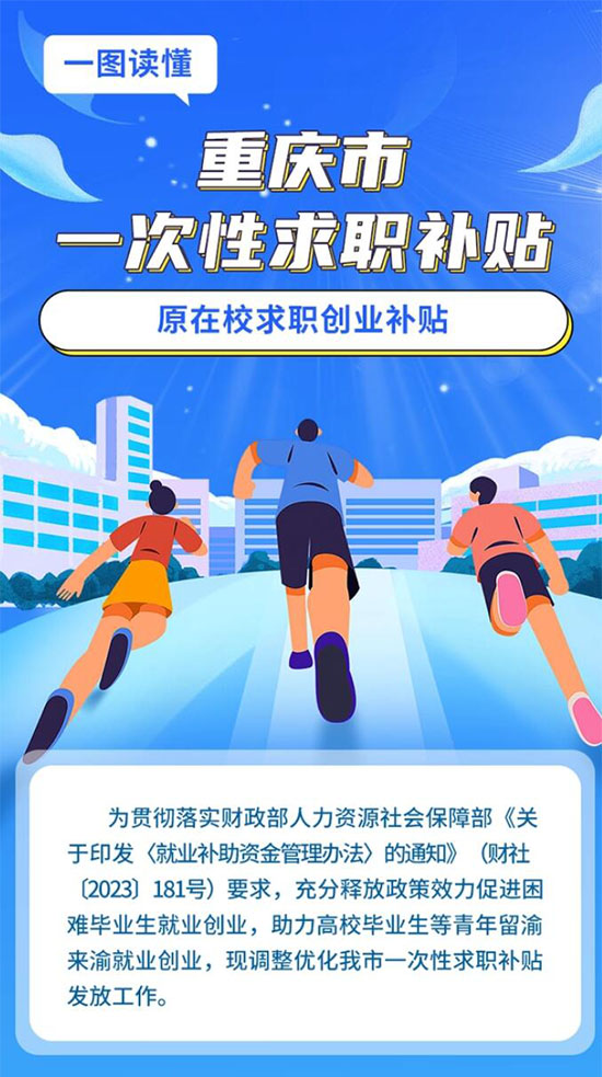 重庆市教委发布消息,符合条件的高校毕业生可享受一次性求职补贴(原在校求职创业补贴)。