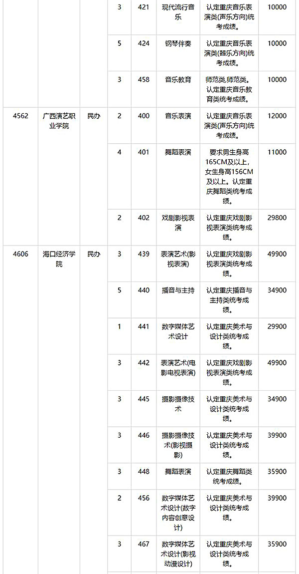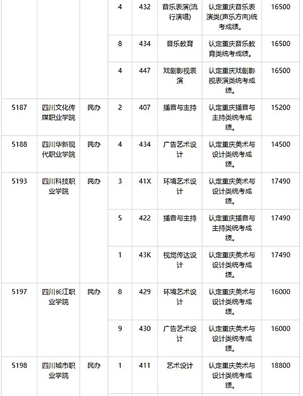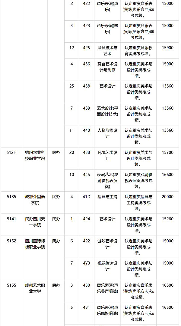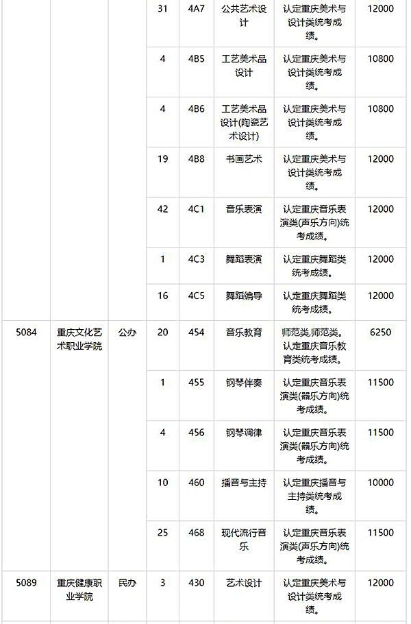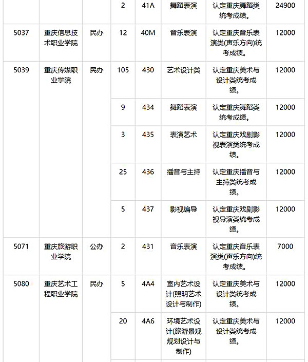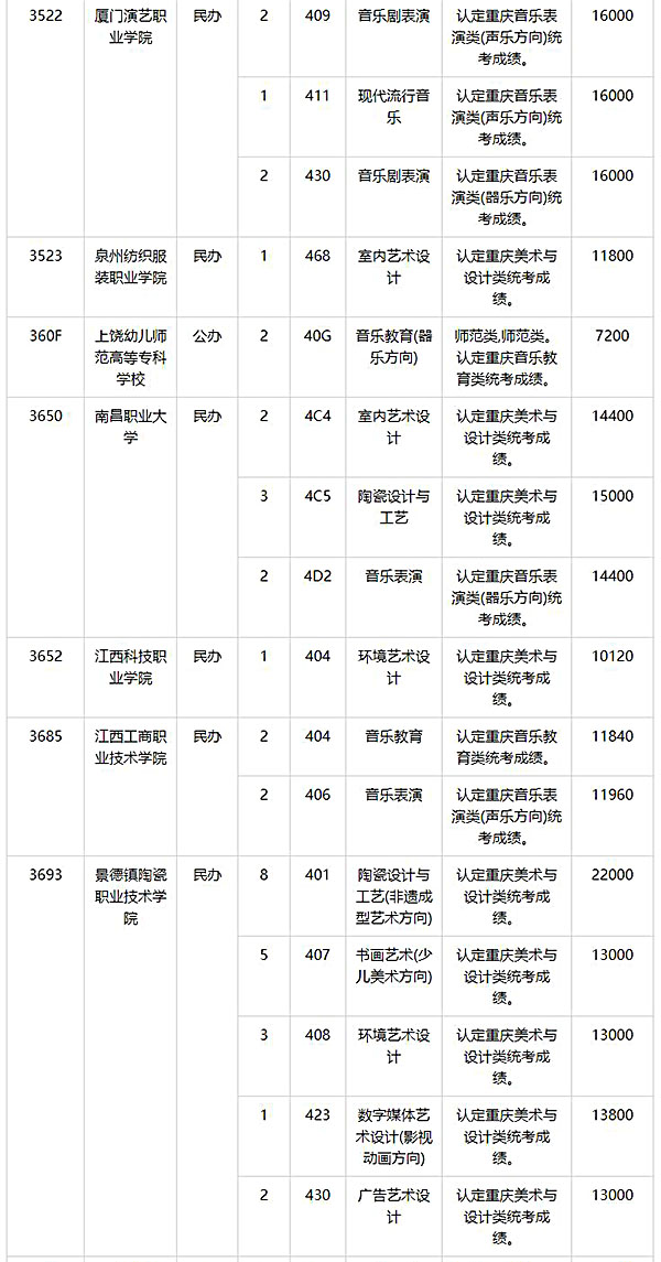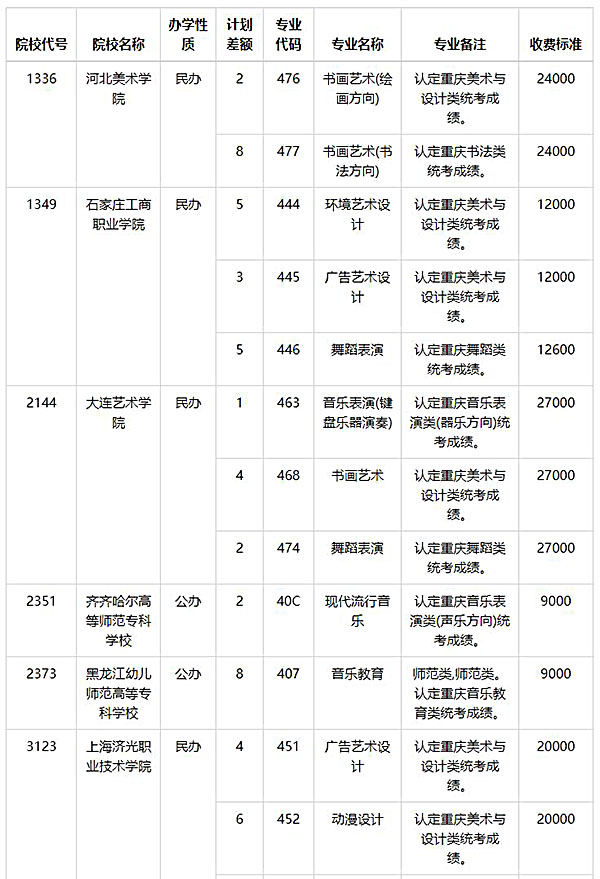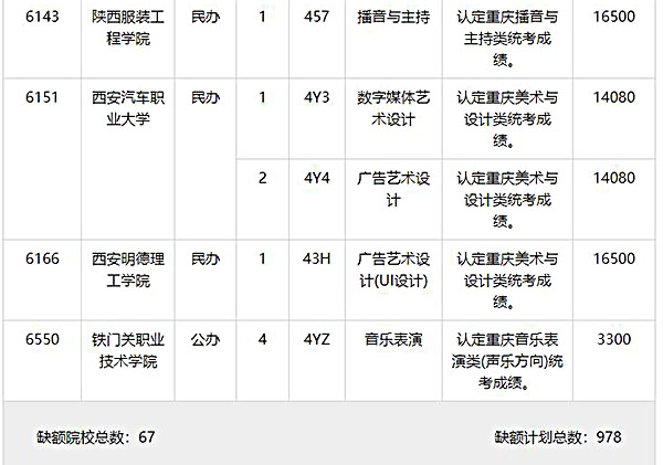 2024年重庆艺术类专科批第2次征集志愿缺额计划公布