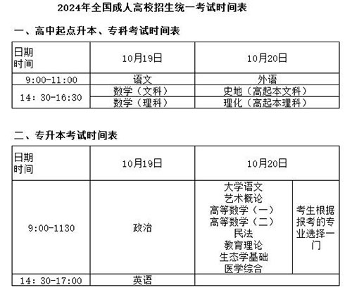 2024年全国成人高考招生考试时间表出炉发布时间:2024/9/3 11:11:48 | 人感兴趣 | 评分:3
