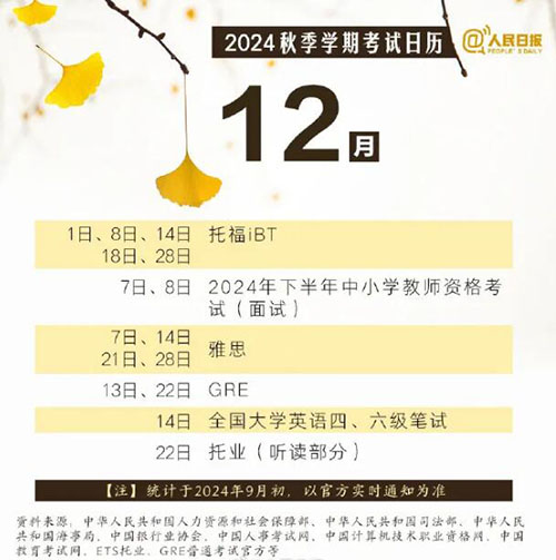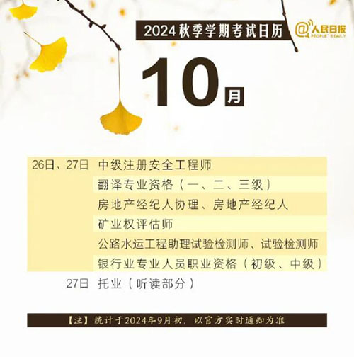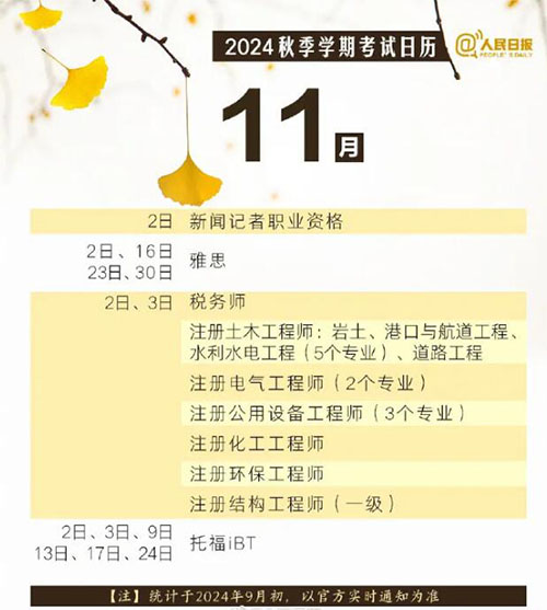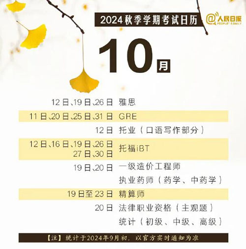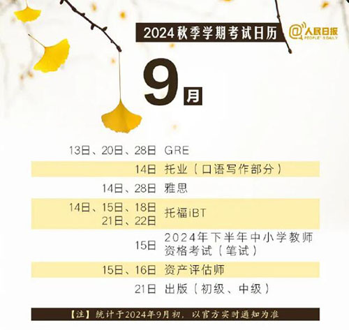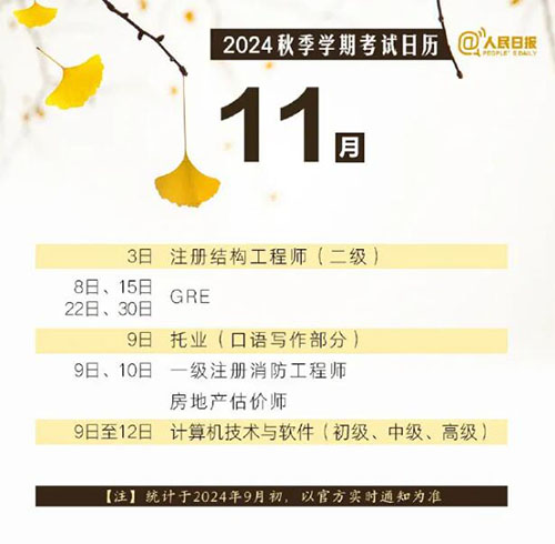 祝你逢考必过!赶紧收藏这份2024年秋季考试日历!