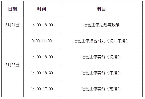 关于社会工作者考试科技及考试时间安排如下: