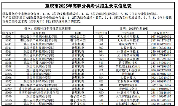 重庆2025年高职分类考试(对口专科批)第三次征集录取信息公布