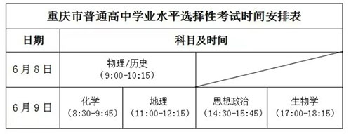(2)普通高中学业水平选择性考试。普通高中学业水平选择性考试科目考试时间安排在6月8日上午和6月9日全天,每科考试时长均为75分钟。