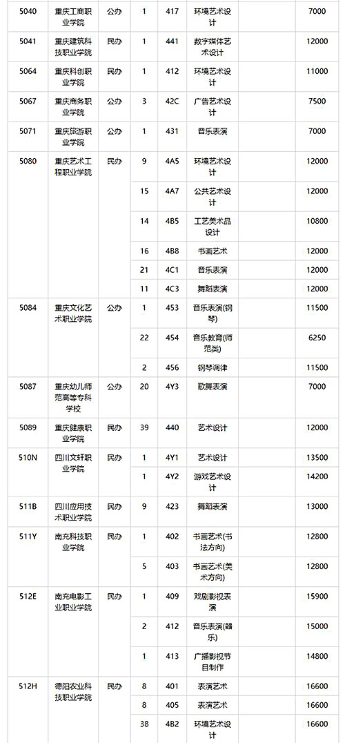 2025年重庆艺术专科批(第1次征集)缺额计划现已公布,详细内容如下: