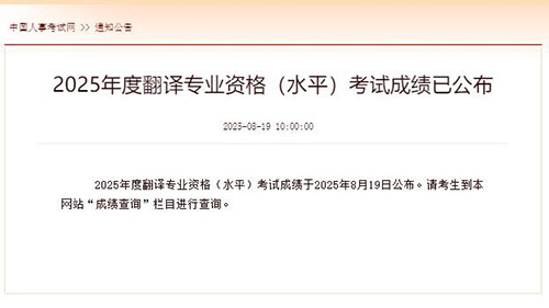 2025年翻译专业资格(水平)考试成绩公布
