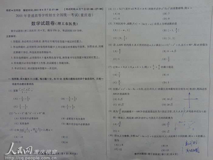 2011重庆高考数学试题(理科数学)发布时间:2011/6/8 10:03:40 | 人感兴趣 | 评分:3