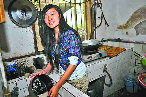 6月3日,长寿区凤城街道和平街一出租房,高三学生夏春艳正在做饭。重庆晨报记者李斌摄