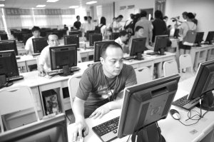 工作人员正在远程网上录取 本报记者 石涛 摄