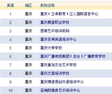 重庆英语培训机构排行榜发布时间:2011/9/6 14:47:49 | 人感兴趣 | 评分:3