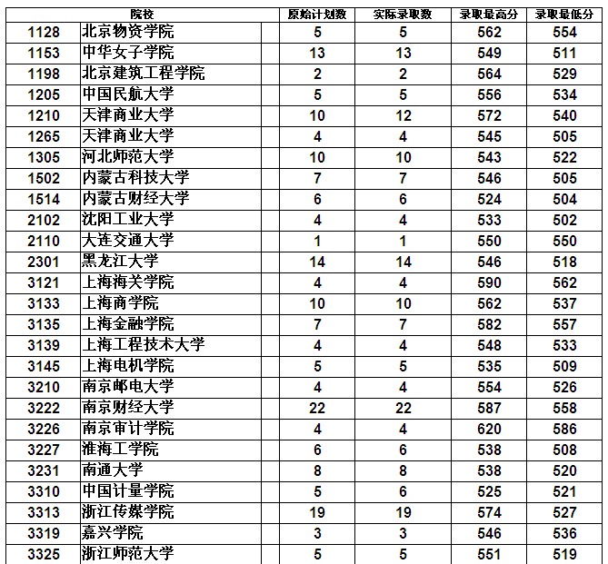 | 1128 | 北京物资学院 | 5 | 5 | 562 | 554 | ||