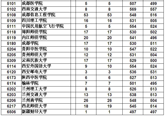 | 5101 | 成都医学院 | 5 | 5 | 507 | 499 | ||