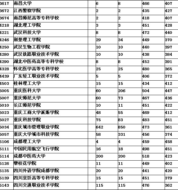 2012年重庆一专理科部分院校录取情况8月7日