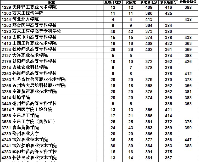 院校原始计划数实际数录取最低分录取最低分