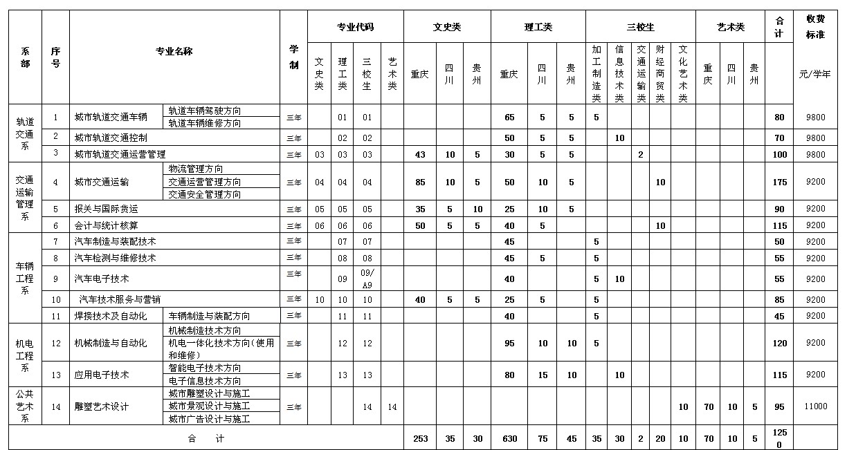 重庆公共运输职业学院2013在重庆招生计划
