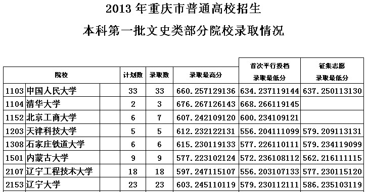 点击此处查看2013一本文科大学在重庆录取分数线(三)完整表格