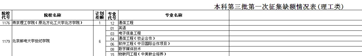 重庆三本二次志愿征集|一次征集志愿缺额表(理工类)