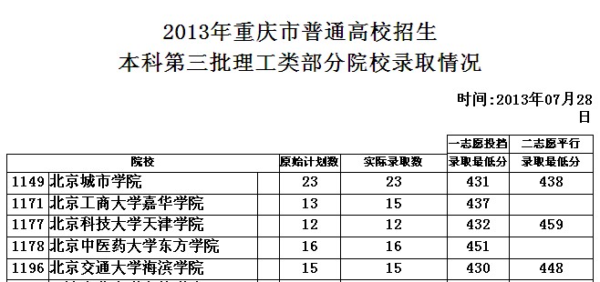 点击此处查看完整版重庆理科三本学校录取情况|录取分数线(二)