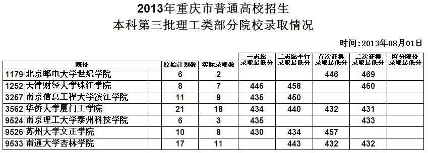 2013三本院校在重庆录取分数线(六)发布时间:2013/8/1 17:01:44 | 人感兴趣 | 评分:3