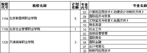高职(专科)二阶段缺额情况表(文史类)