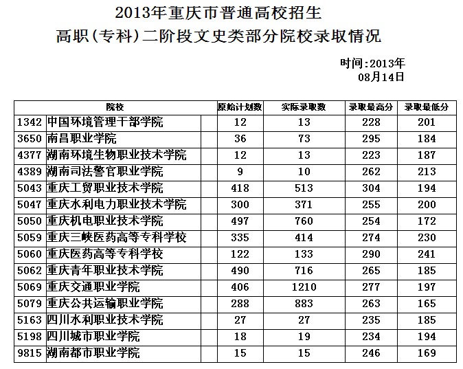 2013重庆专科二阶段文史类录取情况(二)发布时间:2013/8/14 14:29:54 | 人感兴趣 | 评分:3