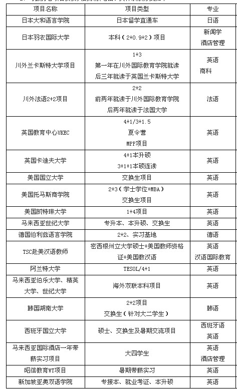 川外南方翻译学院一直坚持走国际导向,一专多能的办学特色,积极拓展国际合作与交流,为在校学生提供在国外学习交流的机会。学院积极加强与国外高等院校在学术交流、教育与科研方面的合作,逐步向国际化本科院校发展。目前,学院结合自身优势与美国、英国、德国、法国、西班牙、日本、澳大利亚、韩国、马来西亚、加拿大等国家的多所大学建立了校际交流关系,开展不同层次的语言培训、本科留学、本硕连读、以及互派留学生、学术交流、短期游学等各种实质性的合作交流项目。