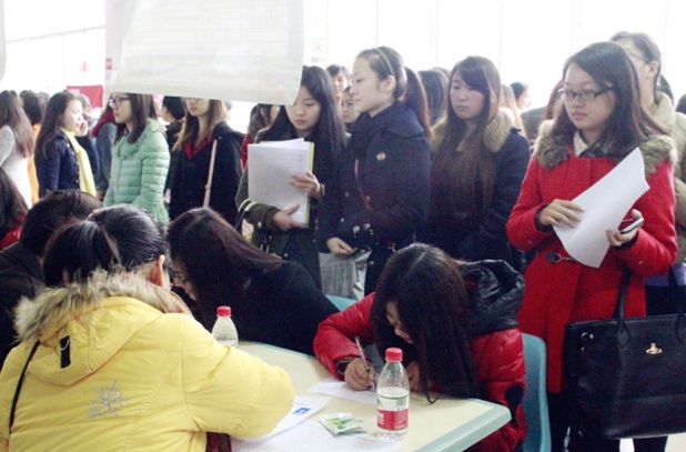 “ 重庆南方翻译学院2014届毕业生就业双选会在学院学生活动中心内隆重举行。”