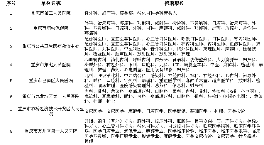 详情请登录重庆大学生就业网(www.cqxsjy.com)