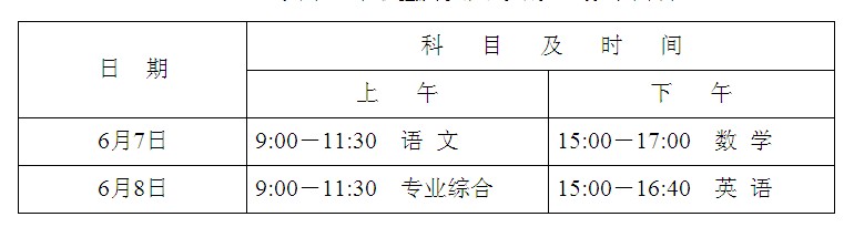 二、对口高职类、中职直升类考试科目及时间安排(北京时间)
