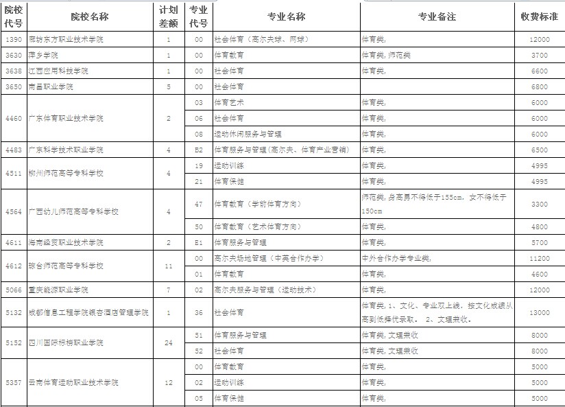 体育高职(专科)缺额情况表(体育类)