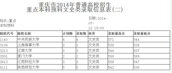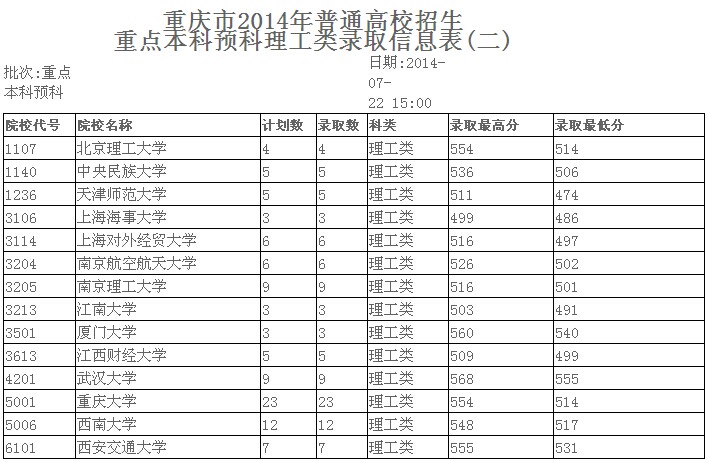 2014年重庆市重点本科预科录取信息(二)发布时间:2014/7/23 9:18:46 | 人感兴趣 | 评分:3