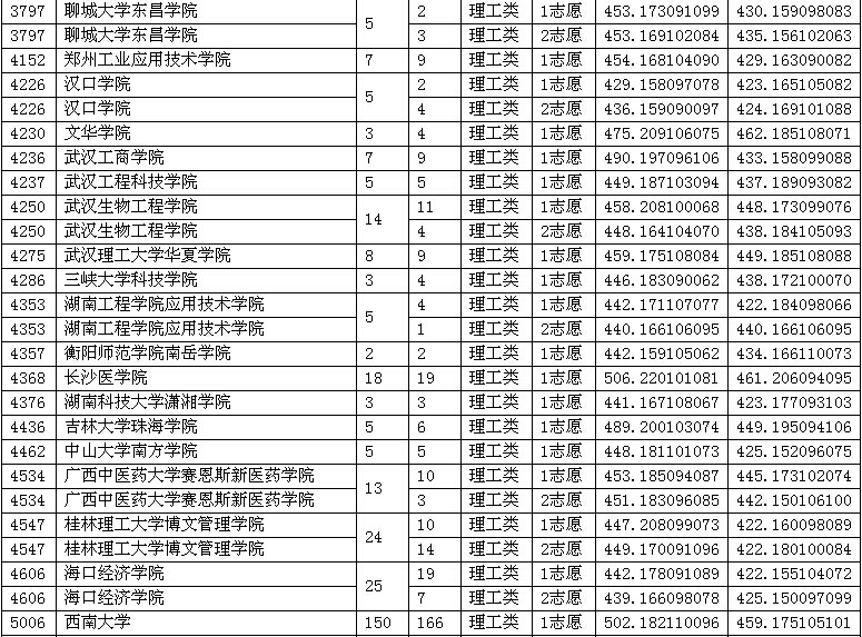 4436吉林大学珠海学院56理工类1志愿489.200103074449.195094106