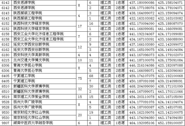 6142西安思源学院86理工类1志愿437.180090086425.158104071