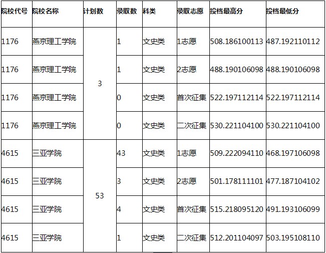 4615三亚学院4文史类首次征集515.218095120491.193106099