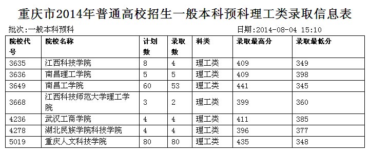 2014年全国普招一般本科预科理工类录取信息发布时间:2014/8/5 9:58:48 | 人感兴趣 | 评分:3
